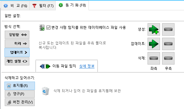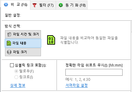 보내는쪽 설정은 파일내용을 비교하는 방식으로 설정